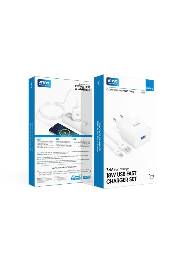 KVK 3.4A FAST CHARGE 18W USB FAST CHARGER SET